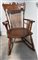 Sedia a dondolo in legno intagliato, schienale traforato, braccioli mossi, gamb