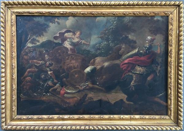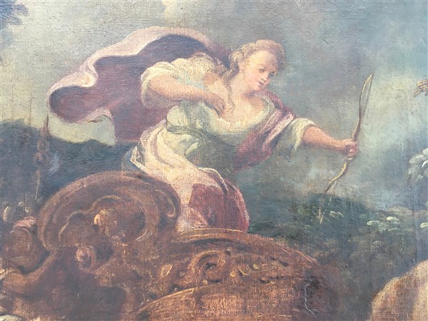 Scuola del secolo XVIII "Scena mitologica" olio su tela (cm 82x120,5). In corni