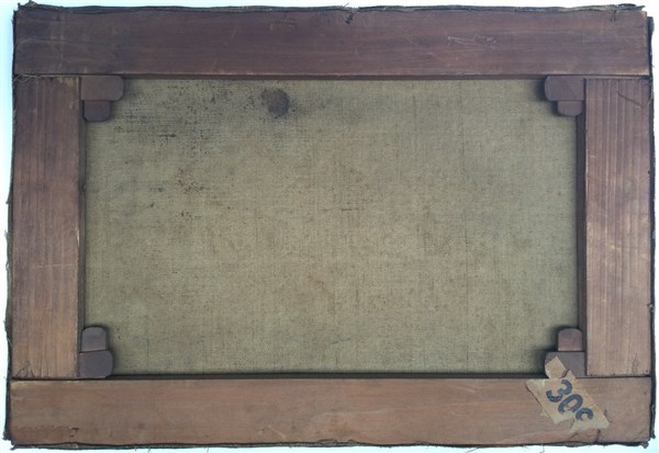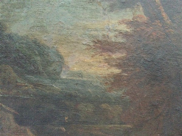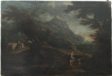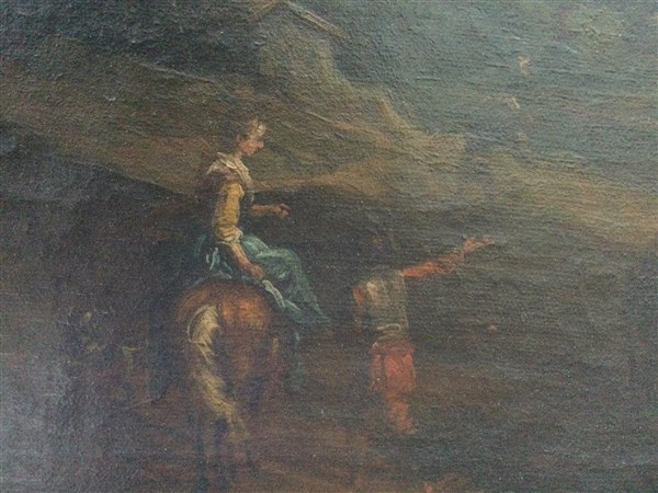Scuola del secolo XVIII "Paesaggio con viandanti" olio su tela (cm 35x51) (dif