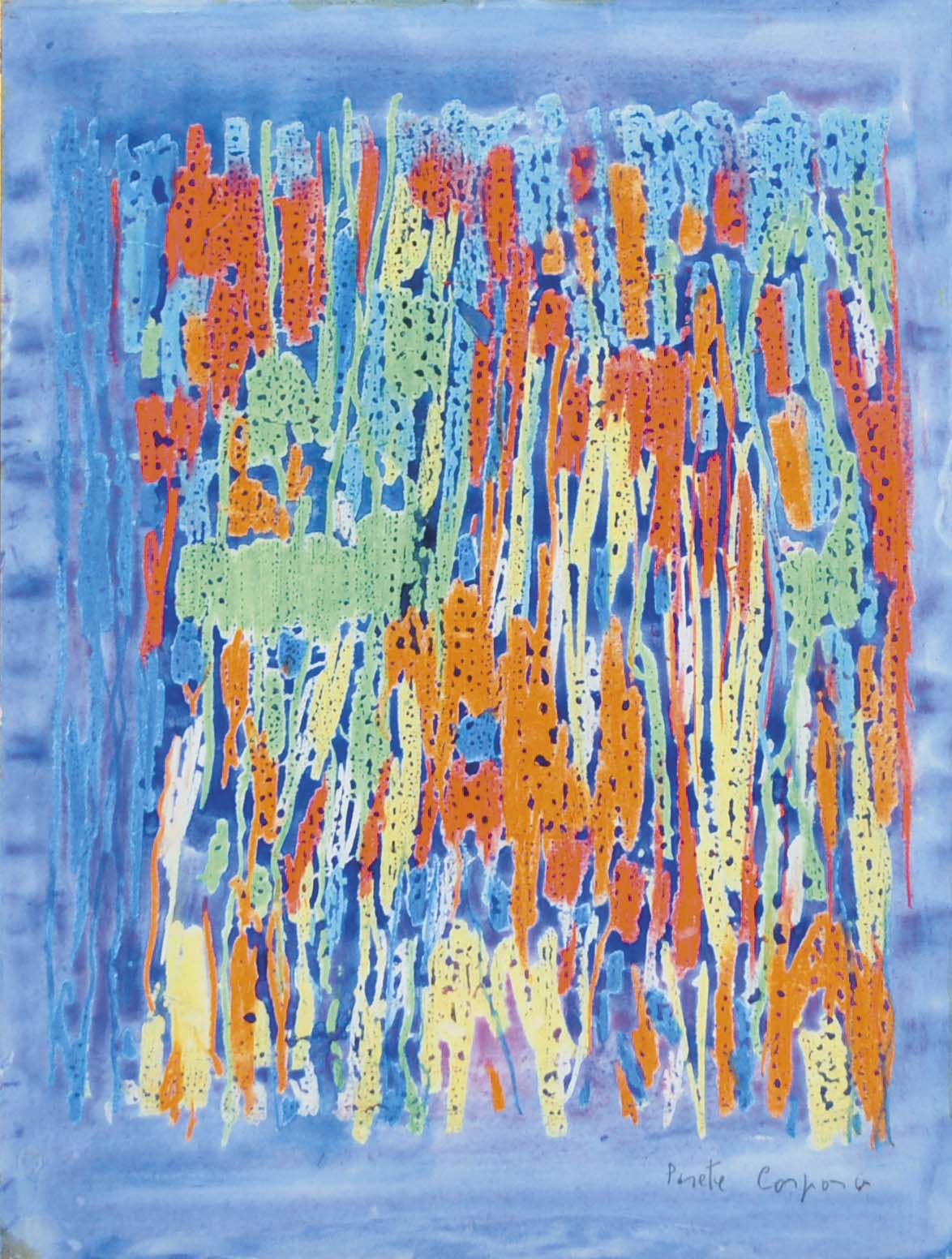 CORPORA ANTONIO Tunisi 1909 - Roma 2004 Parete 1988 tecnica mista su cartoncino cm 40x30 firma e titolo in basso a destra esposizioni Galleria d'Arte Ravagnan Venezia - etichetta al retro