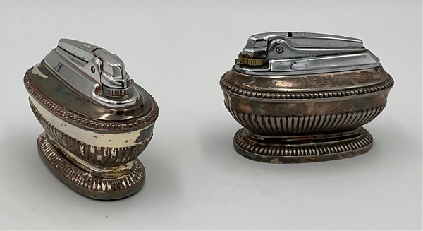 RONSON Lotto di due accendini da tavolo in metallo color argento (difetti e seg