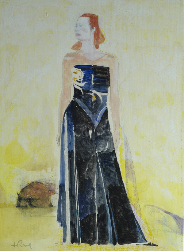Raffaele De Rosa (Podenzana, 1940) FIGURA Tempera su carta, cm. 39,5x28,5 Firma in basso a sinistra.