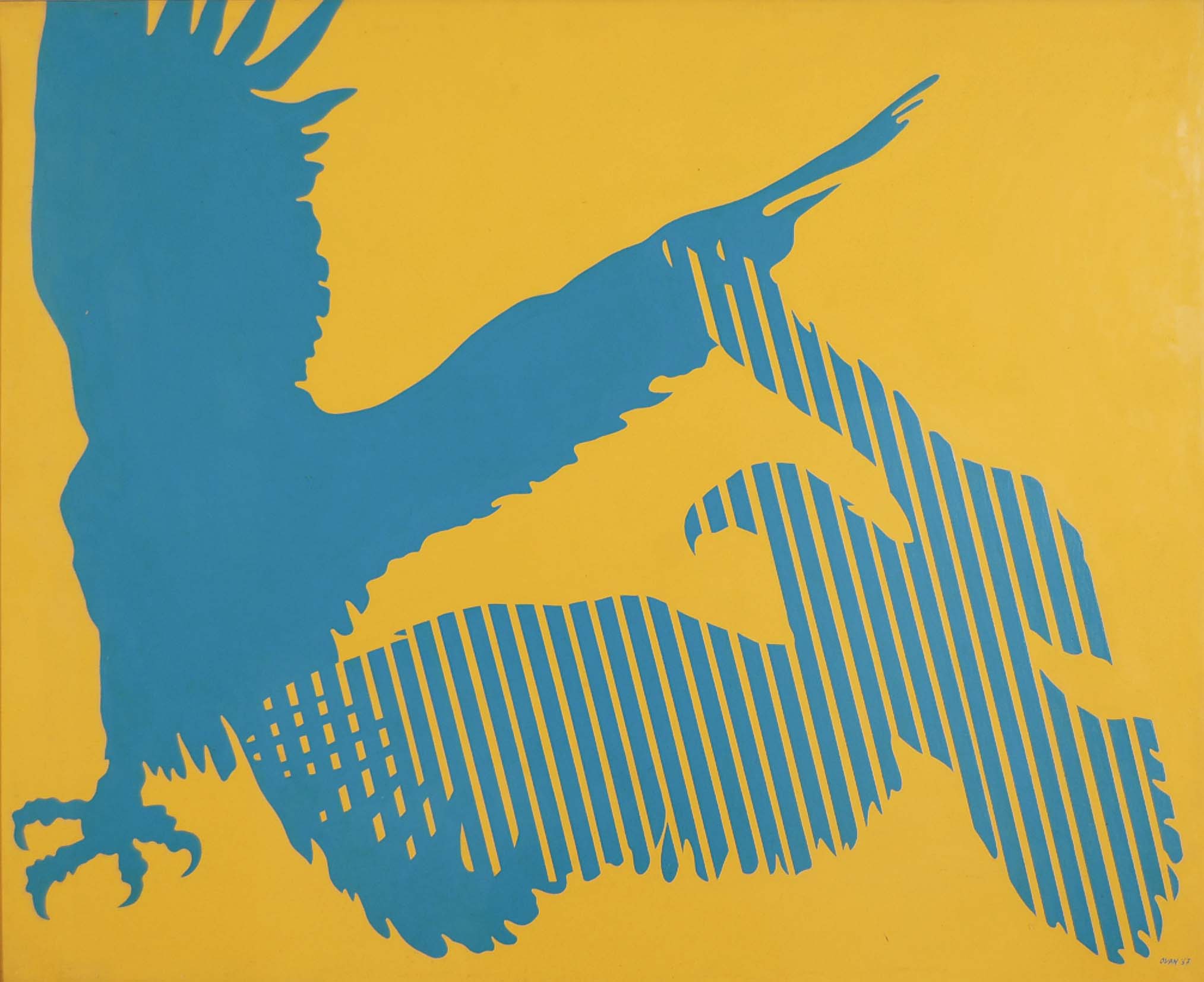 OVAN NINO Udine 1941 Compenetrazione 1967 smalti su tela cm 65x80 firma e data in basso a destra firma data e titolo al retro