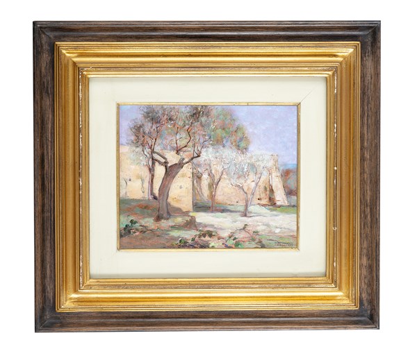 Gino Romiti "Le mura" 1915 olio su cartone pressato (cm 16,5x20,5) Firmato, data