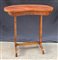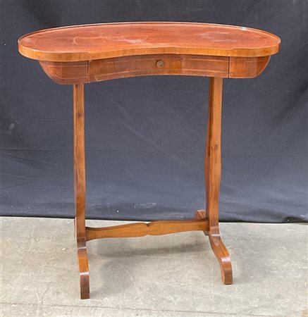 Tavolino a fagiolo in legno filettato con cassetto, gambe sagomate riunite da traverse (cm 77x74x44) (difetti)