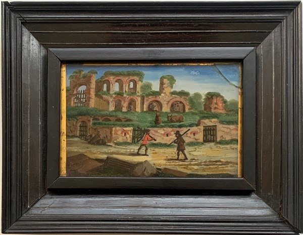 Ignoto del secolo XIX "Rovine romane" dipinto su vetro (cm 9x14) (difetti)