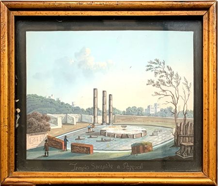 Ignoto "Tempio Serapide a Pozzuoli" gouache (cm 12x14,5) In cornice