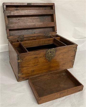 Bauletto da lavoro in legno con rinforzi in metallo e scomparti interni (cm 45x25x28) (difetti)