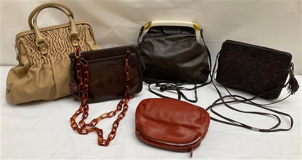 Lotto di quindici fra borse e clutch in nappa e pelle di diversi colori e dimensioni, alcune con dettagli in simil tartaruga (difetti e segni d'uso)