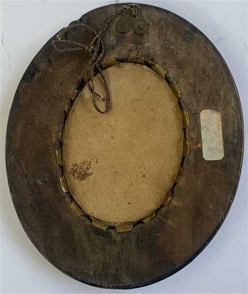 Incisione raffigurante Madonna con bambino (cm 7x5) entro cornice ovale (difetti)