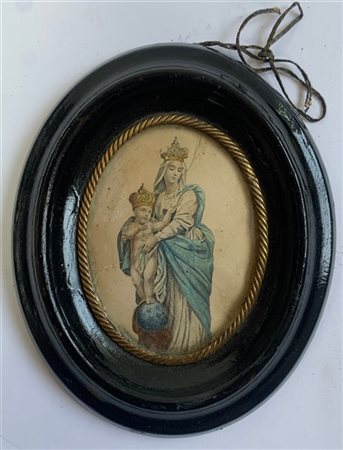 Incisione raffigurante Madonna con bambino (cm 7x5) entro cornice ovale (difett