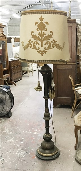 Torciera in metallo decorata a fregi e dorature, montata a luce elettrica
