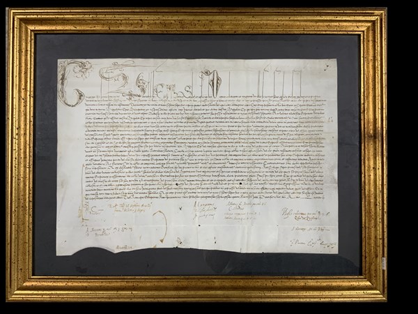 [GREGORIO XV] Bolla manoscritta. Foglio di pergamena (cm 34x51) priva del sigillo plumbeo, entro cornice.