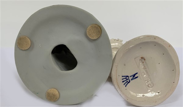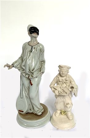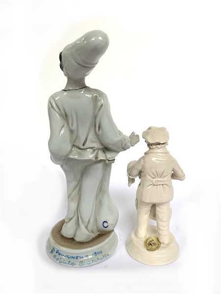 Manifattura di Capodimonte "Pulcinella e Pescivendolo" in porcellana e ceramica bianca (h cm max 23) (difetti)