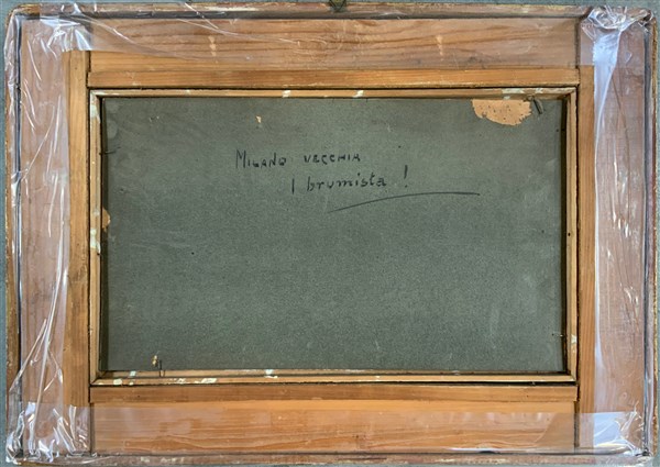 "Vecchia Milano" acquerello su cartone (cm 23x38) Firmato in basso a destra. Al retro: titolato. In cornice in legno dorato (difetti)
