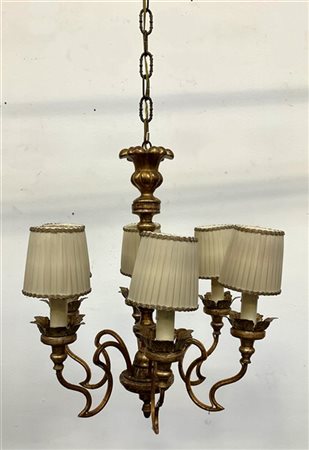 Piccolo lampadario a sei luci in legno e metallo dorato (d cm 40) (lievi difett