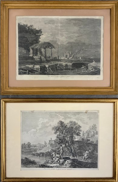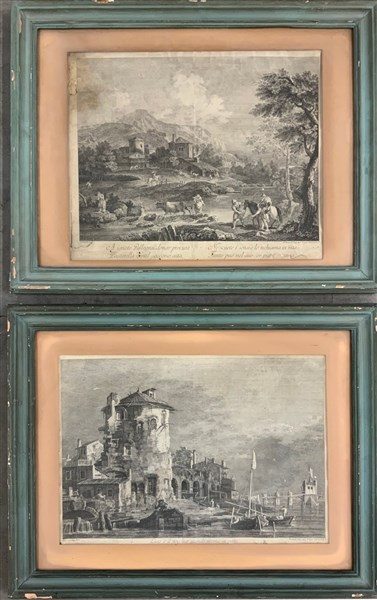 Quattro incisioni venete del secolo XVIII, due da invenzioni di Zuccarelli e due da invenzioni di Canaletto (misure diverse). In cornici