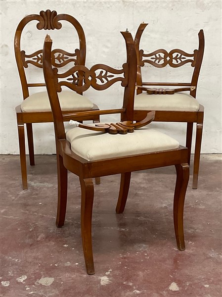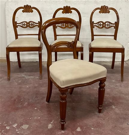 Lotto composto da un gruppo di sei sedie in legno con schienale decorato da con