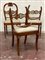 Lotto composto da un gruppo di sei sedie in legno con schienale decorato da conchiglia e una sedia diversa (difetti e rotture)