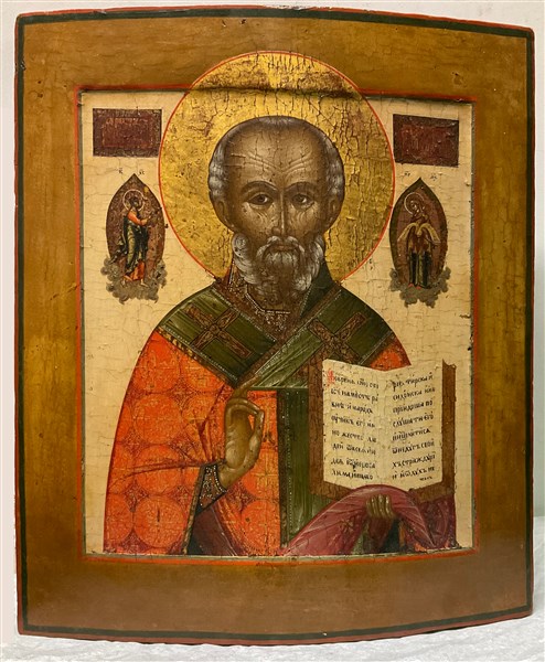 Arte russa del secolo XIX "San Nicola" icona su tavola (cm 37x32.5) (difetti)