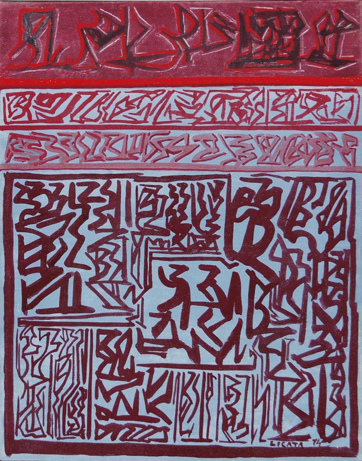 LICATA RICCARDO Torino 1929 senza titolo 1974 tempera su tela cm 30x24 firma e data in basso a destra autentica dell'Autore su foto