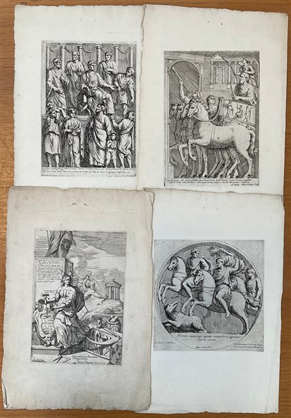 Gruppo di quattro acqueforti raffiguranti scene classiche (mm 265x185, mm 271x191, mm 271x191 e mm 224x220 circa all'impronta)