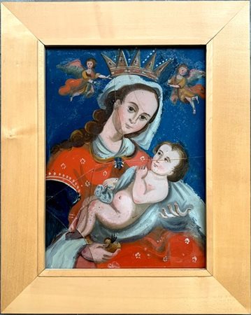 Ignoto "Madonna con Bambino" verre paint (cm 42x32) in cornice (gravi difetti)