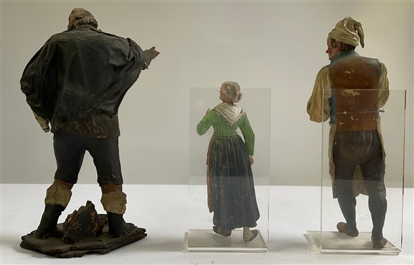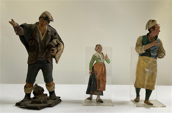Arte popolare, inizio secolo XX. Lotto composto da tre figure da presepe, di cu