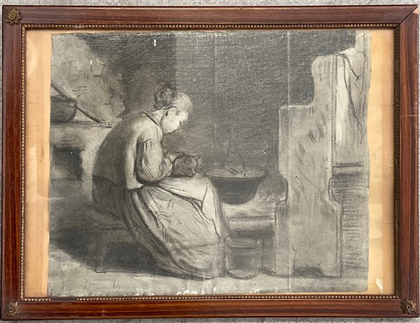 Giuseppe Mazza "Fanciulla con gatto in un interno" carboncino e sfumino su carta