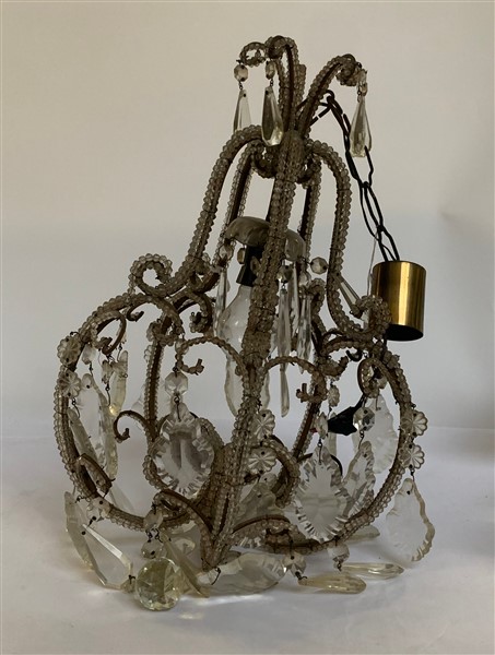 Lotto composto da un lampadario con struttura in metallo con perlinatura e pend