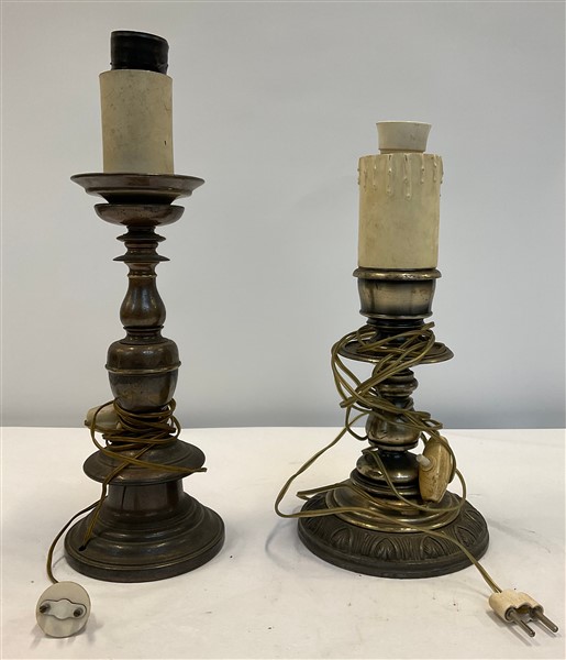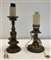 Lotto composto da un lampadario con struttura in metallo con perlinatura e pendenti in vetro e due portacandele in metallo e bronzo (h. max cm 48) (difetti, montati a luce elettrica)