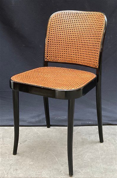 Sedia in legno laccato nero con seduta e schienale incannucciati. (difetti)