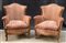 Coppia di poltrone in legno di forma mossa con imbottiture rivestite in tessuto Etro (difetti)