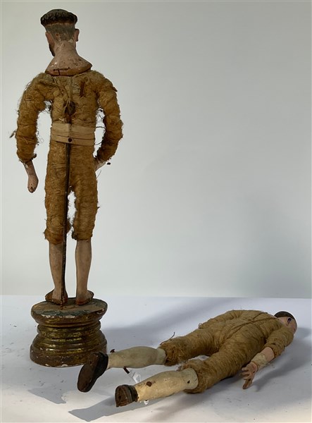 Arte napoletana, secolo XIX. Due figure da presepe con volto terracotta e occhi
