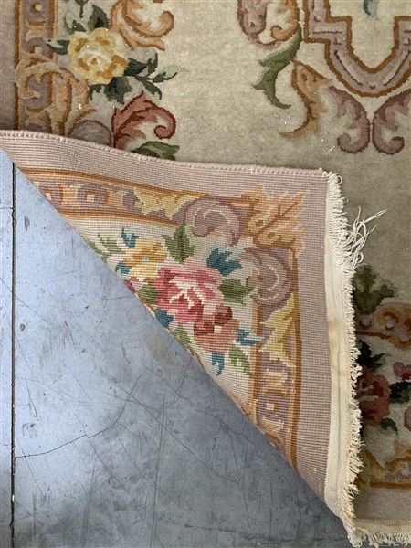 Tappeto cinese, secolo XX. Decoro floreale di ispirazione francese su fondo bia