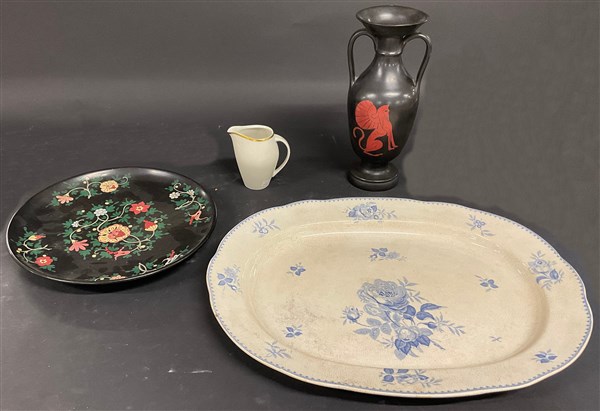 Lotto composto da un vassoio inglese in ceramica, un vaso biansato, un piatto c