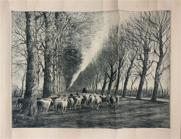 Guglielmo Baldassini (Genova 1885 - Valparaiso 1952) "Il Gregge" acquaforte (cm
