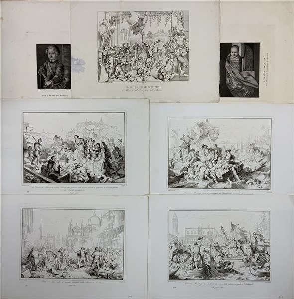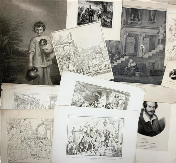 Lotto di una ventina di incisioni del XIX secolo di argomento storico di varie