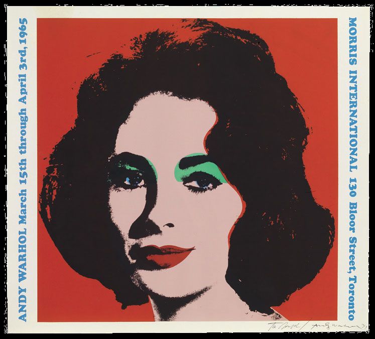 Andy Warhol Pittsburgh 1928 - New York 1987 Liz Taylor Litografia offset, cm. 60x67 Dedica in basso a sinistra: To [...] / Andy Warhol [67]. Manifesto realizzato in occasione della mostra Andy Warhol, Toronto, Morris International, 15 marzo - 3 aprile 1965.