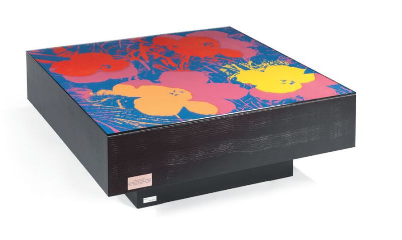 Andy Warhol (d'aprés) Pittsburgh 1928 - New York 1987 Tavolo Flowers Tavolino con serigrafia a colori, es. 32/150, cm. 35x91x91 Su un lato etichetta con dati dell'opera e tiratura: Ex. N. 32/150.