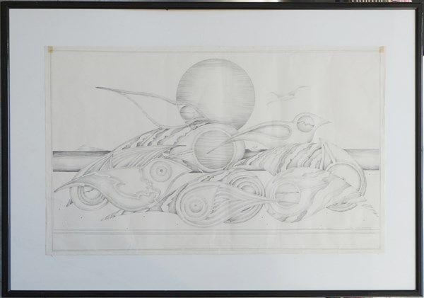 Romano Notari "Uccelli in riva al mare" 1968 matita su carta cm 51x83,5 titolato