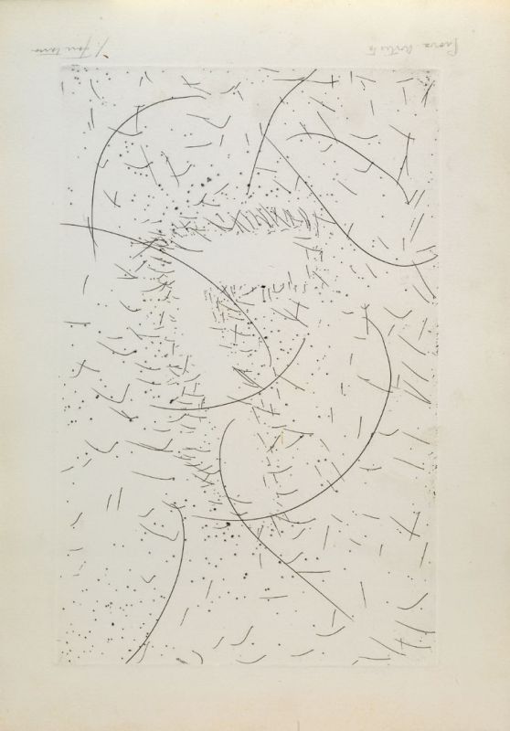 Lucio Fontana Rosario Santa Fè 1899 - Varese 1968 Il sette magnetico, 1968 Acquatinta su carta, es. prova d'artista, cm. 45x31,5 Firma a matita sul margine in basso a destra: L. Fontana, in basso a sinistra tiratura: prova d'artista (capovolte). Tiratura di 100 esemplari firmati e numerati. Stampatore Giorgio Upiglio, Milano, editore Arturo Schwarz, Milano. Bibliografia: Camillo Rigo, Harry Ruhé, Lucio Fontana, incisioni, grafica, multipli, pubblicazioni..., Reverdito Edizioni, Trento, 2007, p. 69, n. E-46.