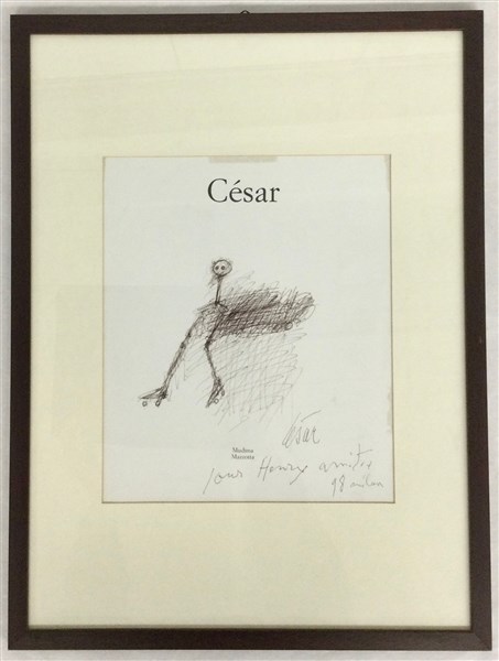 César Schizzo a pena su pagina su libro cm 26,5x22,5 firmato, dedicato e datato