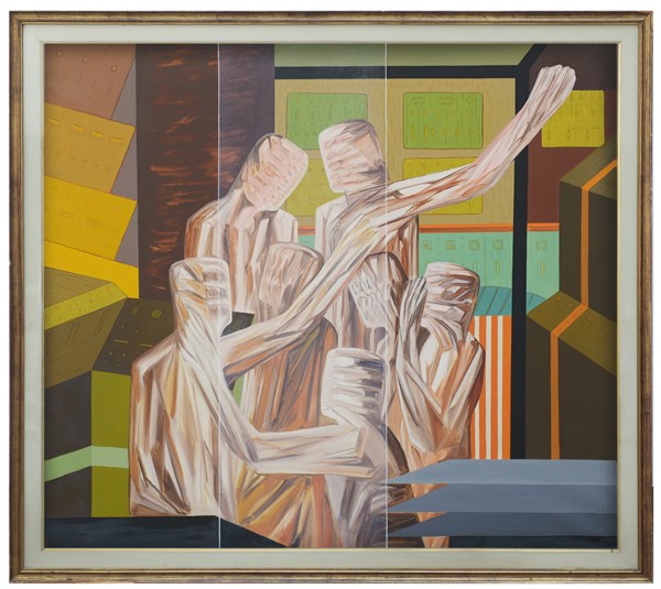 Mario Rossello "Discussione" 1969 olio su tela cm 105x120 firmato in basso a des