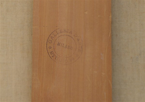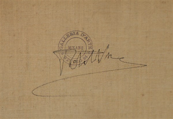 firmato in basso a destra; firmato, datato e titolato al verso, timbro della Galleria d'Arte Studio 84, Milano. In cornice (lievi difetti)