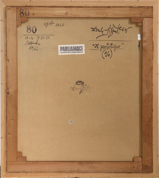 Ercole Pignatelli "Il Prototipo" 1966 olio su tela cm 90x80 firmato, datato e ti