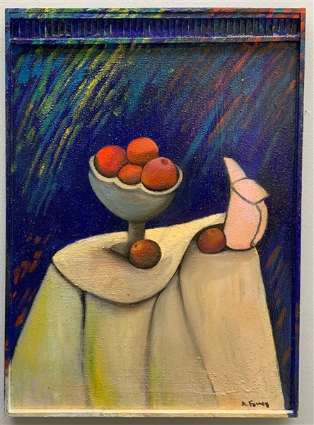 Antonio Fomez "Frutta e brocca" tecnica mista su tela cm 70x50 firmato in basso