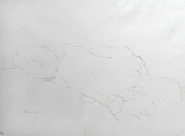 Emanuele Cavalli (Lucerno, 1904 - Firenze, 1981) STUDIO PER NUDO Penna biro su carta, cm. 24x32 Firma in basso a sinistra.