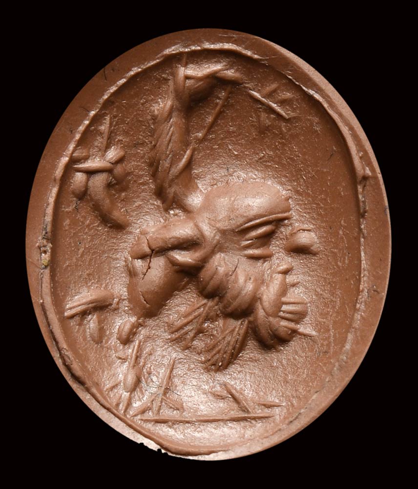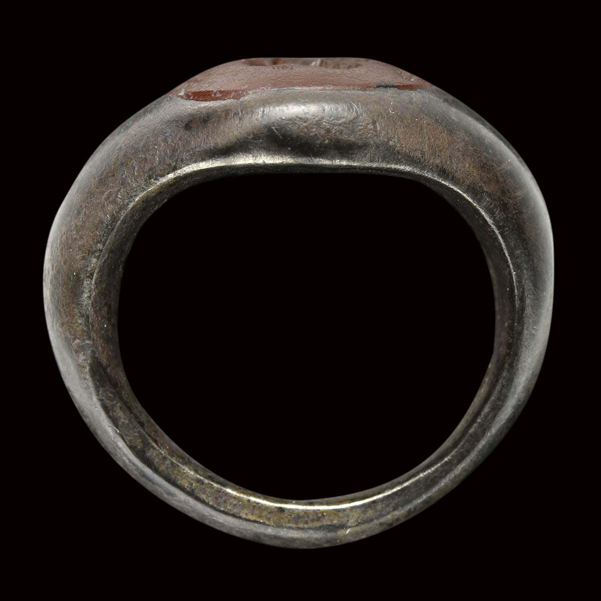 A roman carnelian intaglio mounted on a silver ring. Gryllos.