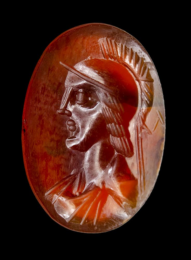 A roman carnelian intaglio. Bust of Athena.